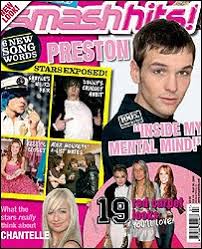 I just found this magazine front cover and I absolutely love it. What I like about it so much is that there are so many different images on the front cover it's given me some ideas about including pictures of posters that would be featured in the issue. This would allow me to better match to the pop music genre by including otehr pictures of artists. With this I can include various different location shoots and artists. mI have an idea now of including a boy band within my coursework.